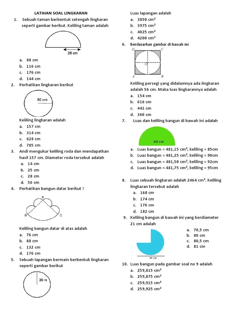 Contoh Soal Cerita Keliling Dan Luas Lingkaran - 90 Soal Keliling Dan Luas Lingkaran Kelas 6 Kurikulum 2013 / Sebuah lingkaran memiliki panjang diameter 35 cm.. Tabung disusun dari 2 lingkaran yang sama luas dan dihubungkan dengan sebuah persegi atau persegi panjang yang disusun mengelilingi lingkaran. Sebelum anda mempelajari contoh soal berikut ini, alangkah baiknya anda mempelajari konsep tentang hubungan antara sudut pusat, panjang busur, luas juring dan tembereng suatu lingkaran.akan tetapi jika sudah mempelajarinya silahkan lihat contoh soalnya berikut ini. Jadi untuk menghitung volume kita … D = 35 cm => r = ½ x d = 17,5 cm. Bentuk soal dalam tes hitungan ini mencakup tes pertambahan, pengurangan, perkalian, pembagian, pecahan dan bentuk matematika dasar lain yang dikemas dalam soal cerita.adapun yang seing kali dikeluhkan atau dirasa sulit oleh sebagian besar peserta ujian masuk stan akan kami bahas disini dalam bentuk contoh soal.